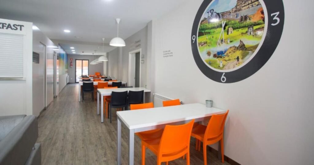 El edificio combina la tradición con la modernidad, manteniendo una estética sencilla pero con toques actuales que aportan frescura y bienestar. Además, las áreas comunes invitan a la convivencia y al intercambio de experiencias con otros caminantes, lo que refuerza el espíritu comunitario propio del Camino de Santiago.